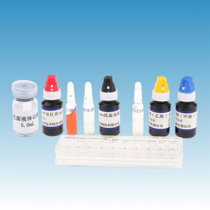 产品规格:包含干制生化鉴定试剂 10 种 ×10 套、三糖铁生化管 10 支、半固体琼脂生化管 10 支、0.5 麦氏浊度比浊管 1 支、一次性滴管 10 支,以及配套试剂无菌液体石蜡、靛基质试剂、甲基红试剂、VP 甲乙液试剂各 1 瓶。一份试剂盒可鉴定 10 个可疑菌落。